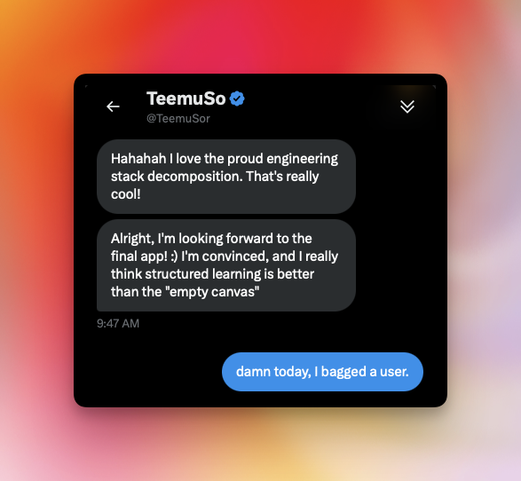 He is going to be the first external user <3 of @learni_app, please do DM me, and let's have conversation.