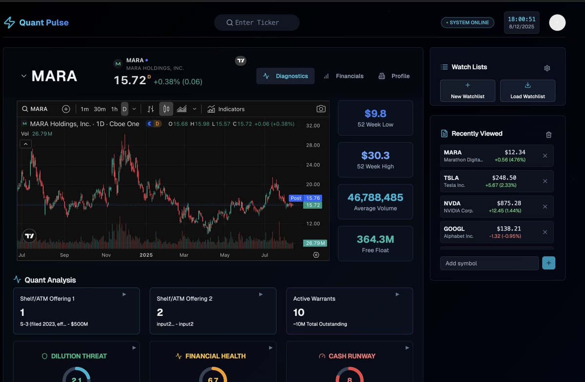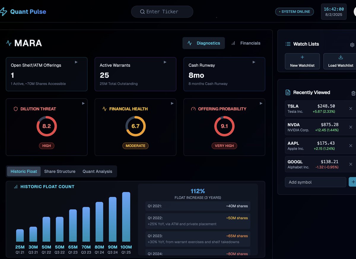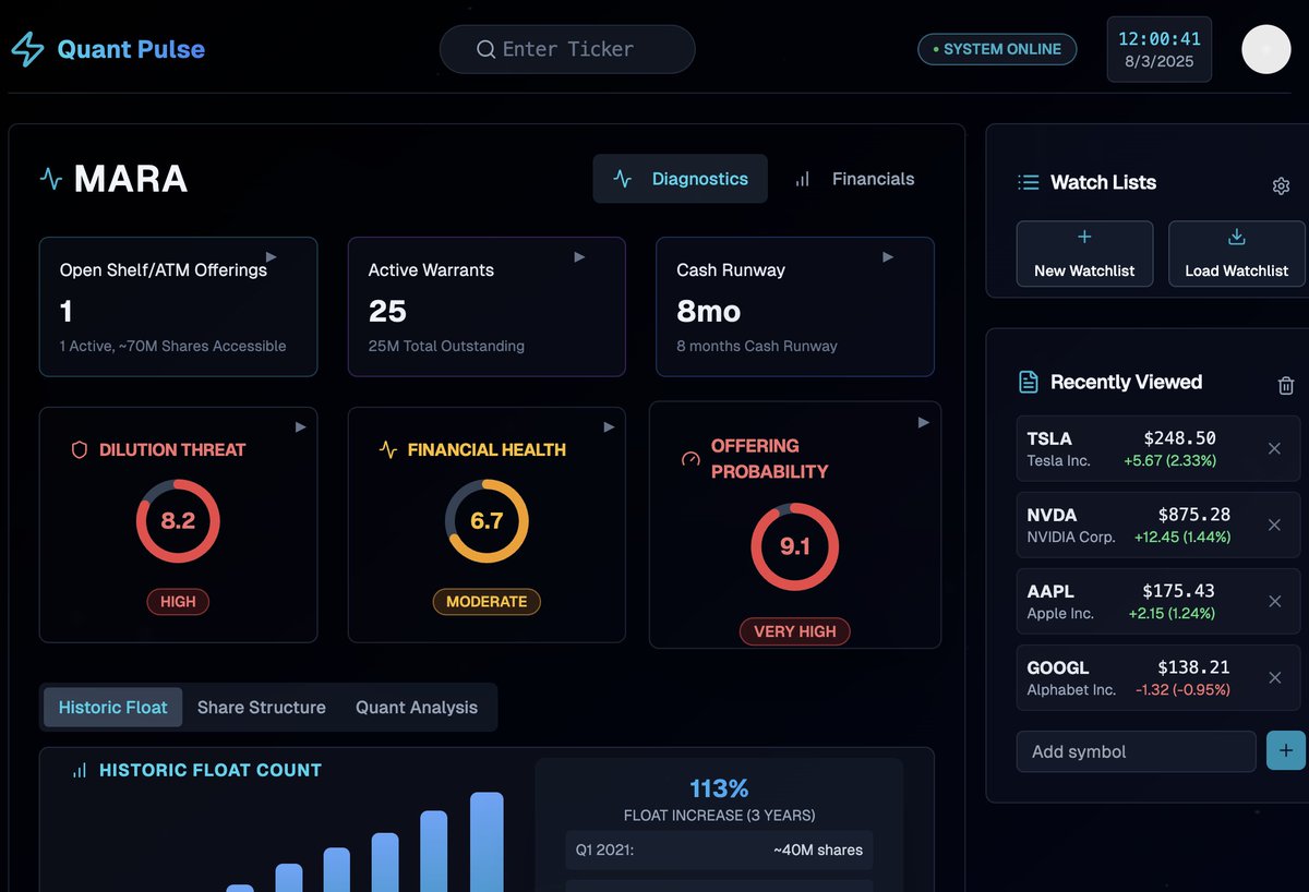 Building Quant Pulse: AI-powered stock analyst & dilution tracker for traders 🚀