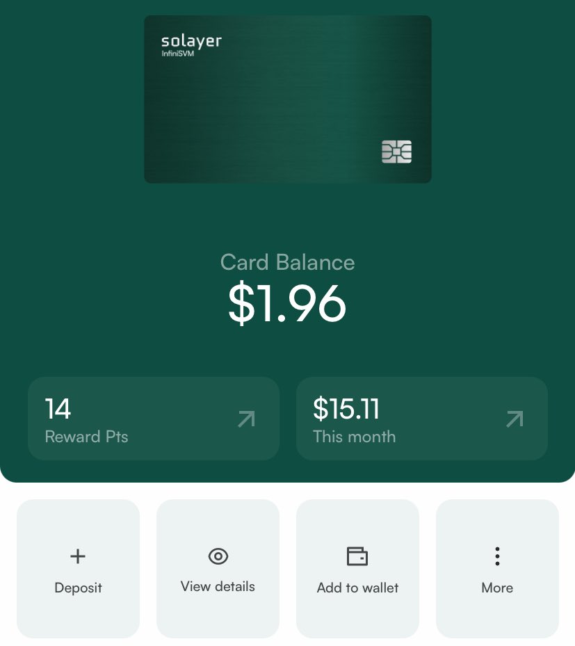 Just tried out @solayer_labs Emerald card and didn’t expect it to go so smooth.