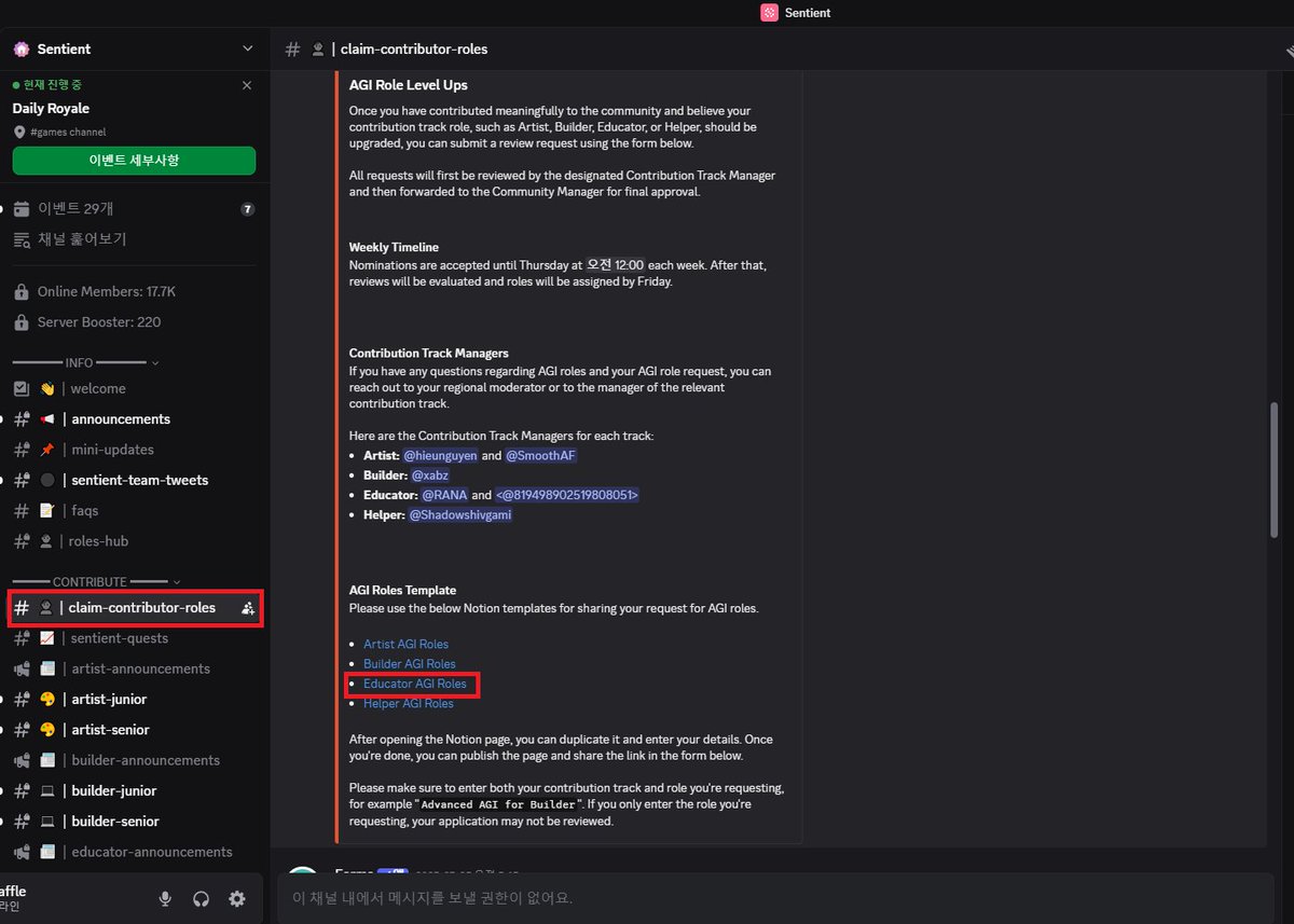 • Sentient Discord에서의 채팅 수