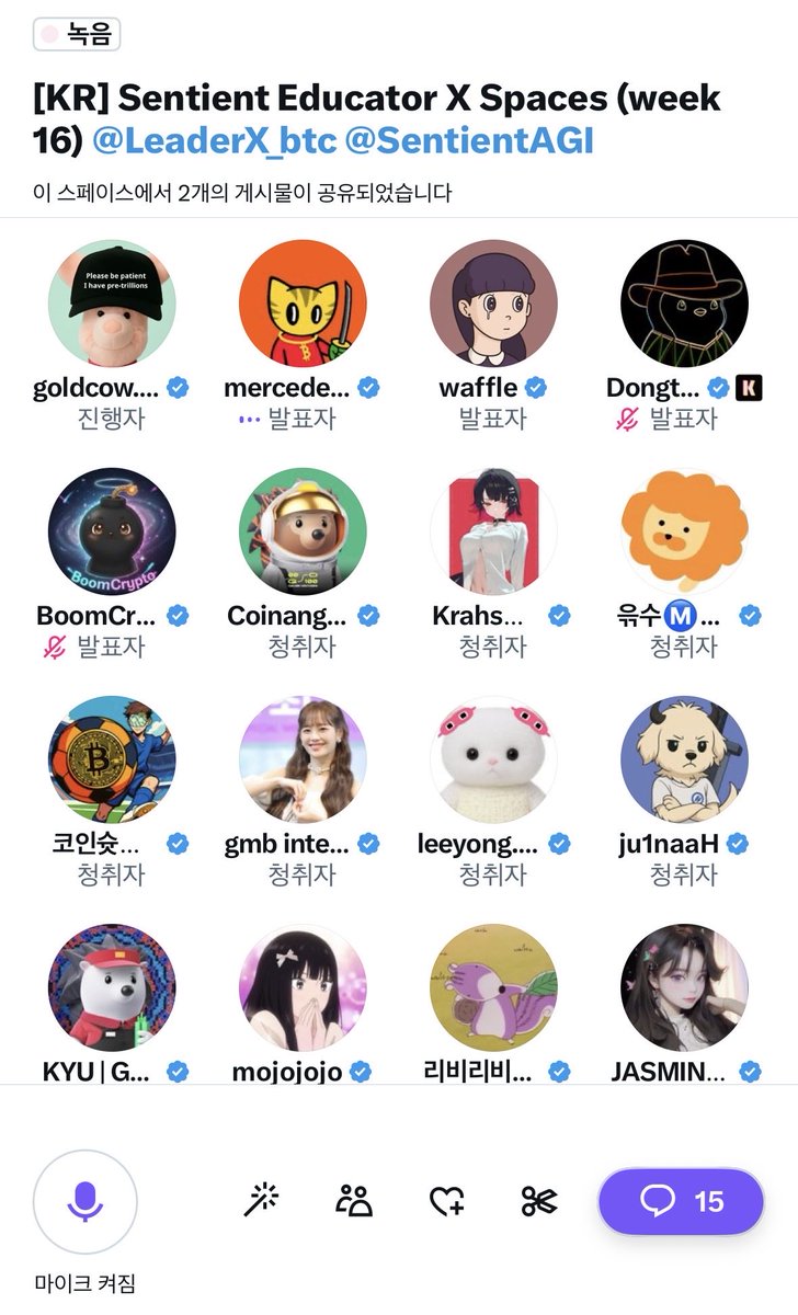 오늘은 @SentientAGI Korea Educator Week 16 Community Leadership on X Spaces 를 진행하였습니다.