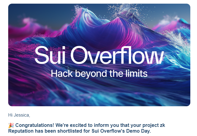 Being selected for the SUI Overflow Hackathon demo day with her project @zk_reputation is a testament to Jessica’s innovation and credibility in the blockchain dev space.