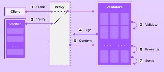 Validators confirm the client’s signature, nonce, and any verifier signatures, then sign the claim themselves — but don’t update state yet.