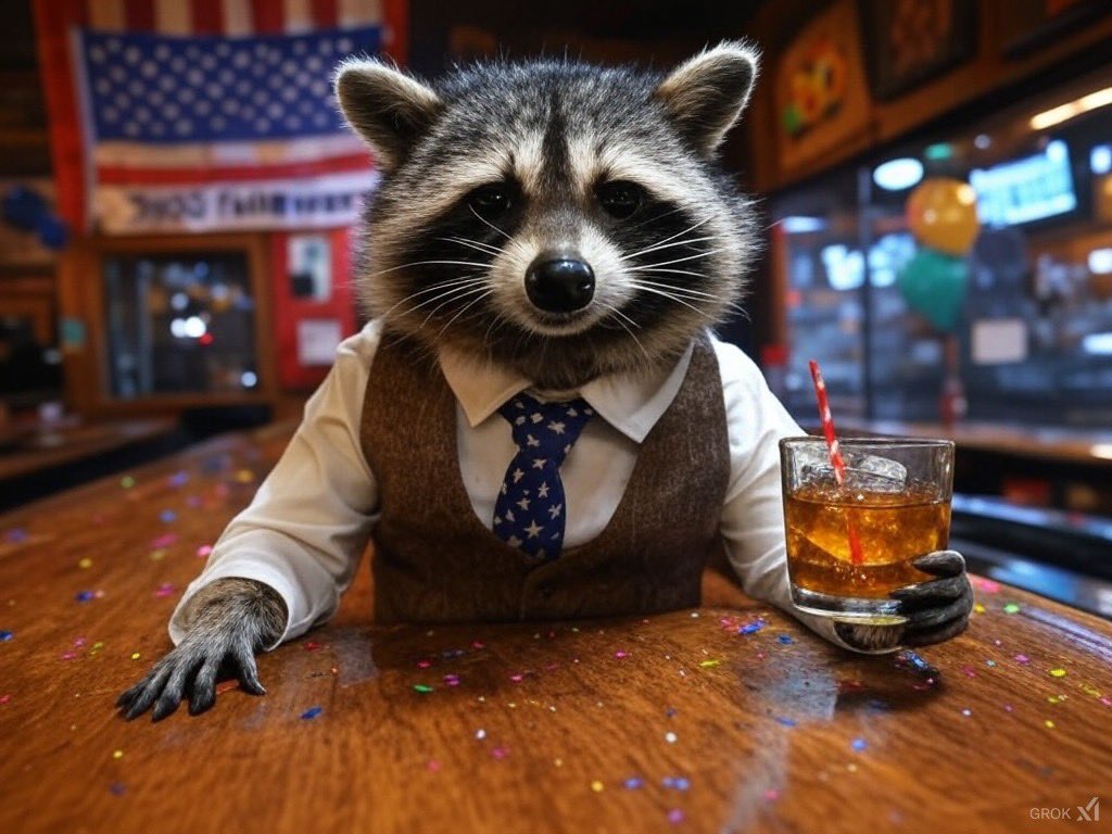 Whisky Racoon is the charismatic, whiskey-loving mascot of X, serving up daily greetings and a spirited slice of life with a distinctly American flair. With over 15,000 tweets, this raccoon never misses a chance to engage, amuse, and rouse conversation, all while embracing a no-nonsense, ‘America first’ attitude. Expect laughs, lively debates, and a little bit of chaos—because arguing with a drunk raccoon never gets boring.