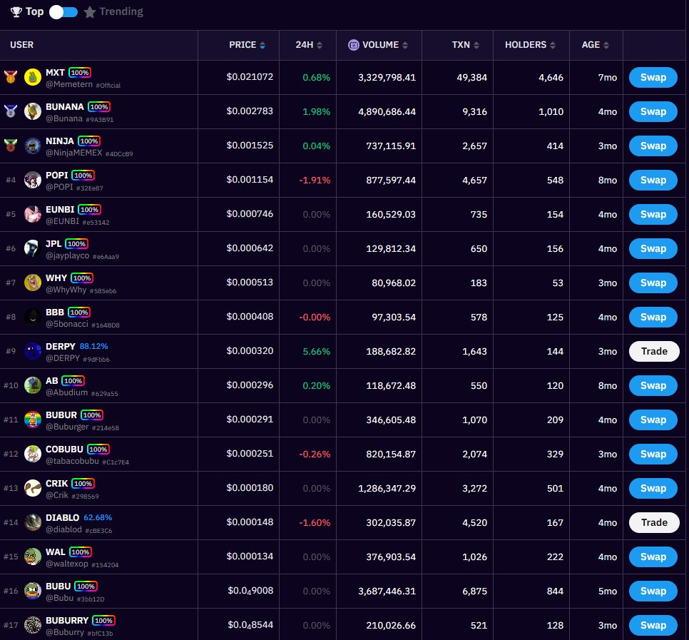 MemeX ํํผ๋ฅผ ์ ๊ฐ ๋ค์ด๊ฐ๋ณด์๋๋ฐ์. Leaderboard๋ฅผ ๋๋ฅด๋ฉด ์ฒ์๋ณด๋ ๋ฐ์ฝ์ธ๋ค์ด ์์ฒญ ์ฐ์์ ๋์ด๋์ด ์์ต๋๋ค. ์ ๋ ๋ฐ์ฝ์ ์ง์ฌ์ด ์๋์์๊น์?