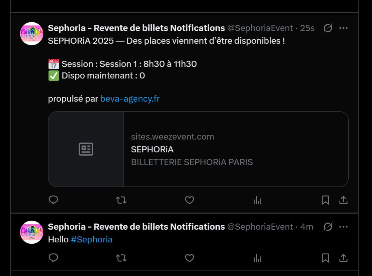 \n\nAvec N8N ça Ă©tĂ© assez simple de le faire, en moins de 30min\nPlus qu'Ă attendre!!\n\nSi d'autres voudront l'accĂšs, je le donnerai seulement si on a trouvĂ© des billets đ€Ł\n\n#Sephoria","in_reply_to_user_id_str":null,"in_reply_to_status_id_str":null,"is_quote_status":0,"is_ai":null,"ai_score":null},{"bookmarked":false,"display_text_range":[0,271],"entities":{"hashtags":[],"media":[{"display_url":"pic.x.com/Q53zTaBePz","expanded_url":"https://x.com/xCSTLLI/status/1945094100128022672/photo/1","id_str":"1945090072472174593","indices":[272,295],"media_key":"3_1945090072472174593","media_url_https":"https://pbs.twimg.com/media/Gv5ZHYnXwAEhDMO.jpg","type":"photo","url":"https://t.co/Q53zTaBePz","ext_media_availability":{"status":"Available"},"features":{"large":{"faces":[]},"medium":{"faces":[]},"small":{"faces":[]},"orig":{"faces":[]}},"sizes":{"large":{"h":1024,"w":1536,"resize":"fit"},"medium":{"h":800,"w":1200,"resize":"fit"},"small":{"h":453,"w":680,"resize":"fit"},"thumb":{"h":150,"w":150,"resize":"crop"}},"original_info":{"height":1024,"width":1536,"focus_rects":[{"x":0,"y":0,"w":1536,"h":860},{"x":0,"y":0,"w":1024,"h":1024},{"x":0,"y":0,"w":898,"h":1024},{"x":89,"y":0,"w":512,"h":1024},{"x":0,"y":0,"w":1536,"h":1024}]},"allow_download_status":{"allow_download":true},"media_results":{"result":{"media_key":"3_1945090072472174593"}}}],"symbols":[],"timestamps":[],"urls":[],"user_mentions":[{"id_str":"1165549950","name":"Benjamin | mazaki","screen_name":"mazaki_eth","indices":[33,44]},{"id_str":"1165549950","name":"Benjamin | mazaki","screen_name":"mazaki_eth","indices":[33,44]},{"id_str":"1922994697854910466","name":"Lavicon â AI Icon 3D Animation","screen_name":"laviconapp","indices":[272,283]}]},"extended_entities":{"media":[{"display_url":"pic.x.com/Q53zTaBePz","expanded_url":"https://x.com/xCSTLLI/status/1945094100128022672/photo/1","id_str":"1945090072472174593","indices":[272,295],"media_key":"3_1945090072472174593","media_url_https":"https://pbs.twimg.com/media/Gv5ZHYnXwAEhDMO.jpg","type":"photo","url":"https://t.co/Q53zTaBePz","ext_media_availability":{"status":"Available"},"features":{"large":{"faces":[]},"medium":{"faces":[]},"small":{"faces":[]},"orig":{"faces":[]}},"sizes":{"large":{"h":1024,"w":1536,"resize":"fit"},"medium":{"h":800,"w":1200,"resize":"fit"},"small":{"h":453,"w":680,"resize":"fit"},"thumb":{"h":150,"w":150,"resize":"crop"}},"original_info":{"height":1024,"width":1536,"focus_rects":[{"x":0,"y":0,"w":1536,"h":860},{"x":0,"y":0,"w":1024,"h":1024},{"x":0,"y":0,"w":898,"h":1024},{"x":89,"y":0,"w":512,"h":1024},{"x":0,"y":0,"w":1536,"h":1024}]},"allow_download_status":{"allow_download":true},"media_results":{"result":{"media_key":"3_1945090072472174593"}}}]},"favorited":false,"lang":"fr","possibly_sensitive":false,"possibly_sensitive_editable":true,"retweeted":false,"fact_check":null,"id":"1945094100128022672","view_count":1834,"bookmark_count":0,"created_at":1752581546000,"favorite_count":28,"quote_count":1,"reply_count":5,"retweet_count":4,"user_id_str":"796793197481652225","conversation_id_str":"1945094100128022672","full_text":"Chaque bonne chose a une fin ! \n\n@mazaki_eth et moi sommes trĂšs heureux d'avoir bossĂ© sur ce projet.\n\nC'Ă©tait avant tout pour nous un challenge de sortir un MVP, mais nous en avons gagnĂ© bien plus. \n\nPar manque de temps (mais pas d'idĂ©esđ