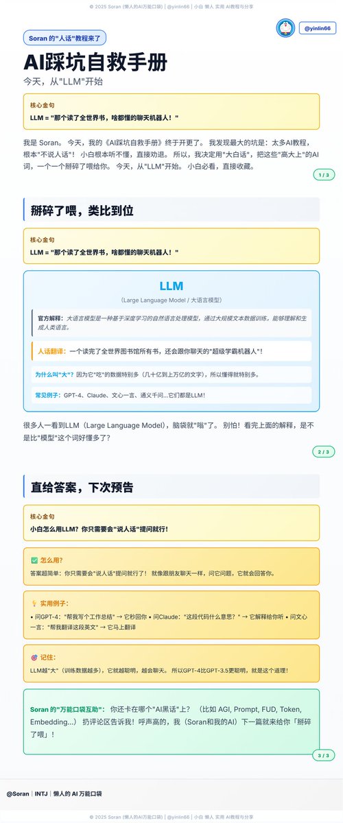 Built a comprehensive, multi-year ‘AI踩坑自救手册’ that helps absolute beginners confidently navigate the AI landscape, establishing themselves as a trusted go-to resource for practical AI education.