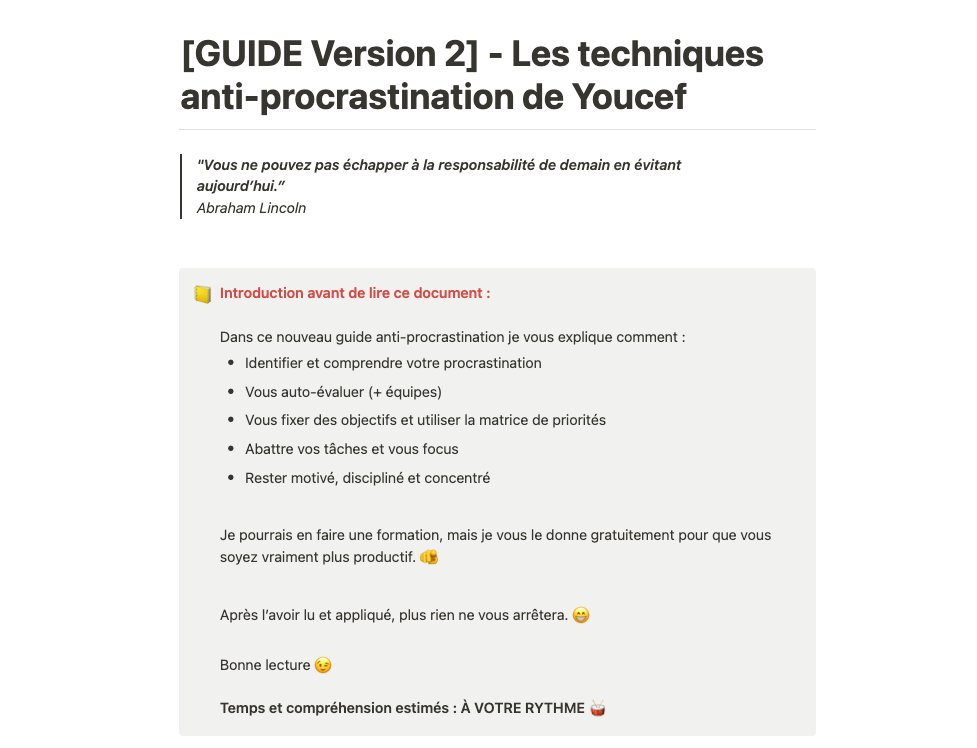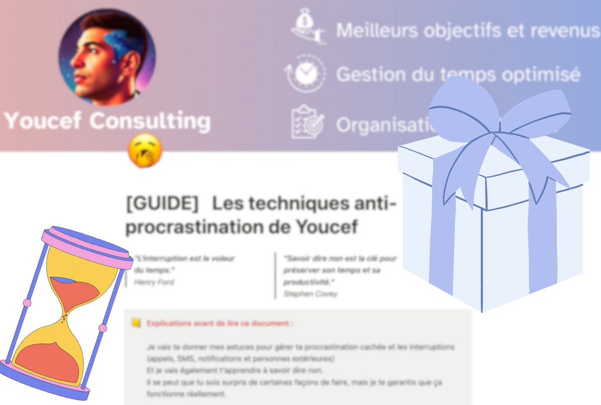 🚨 NOUVEAU GUIDE ANTI-PROCRASTINATION 🚨 Vous étiez nombreux à avoir apprécié la V1 ! 🙏 Et autant dire que vous n’êtes pas prêt pour cette V2 😂 Dans ce NOUVEAU guide j’explique TOUT : 👉 Comment détruire définitivement la FLEMME 👉 Comment toujours être MOTIVÉ & DISCIPLINÉ 👉 En cadeau bonus des templates inédits ! 🎁 👉 Et des techniques de productivité Anti-procrastination Je rends TOUT accessible pendant 24H ! Ensuite je coupe car la valeur est encore une fois vraiment ÉNORME ! 😄 (En ce moment, je suis généreux) Pour l’avoir : 👉 FOLLOW @youcef_consult (sinon je ne répond même pas) 👉 Like 👉 Commente “FLEMME” Tu as 24H 🫵