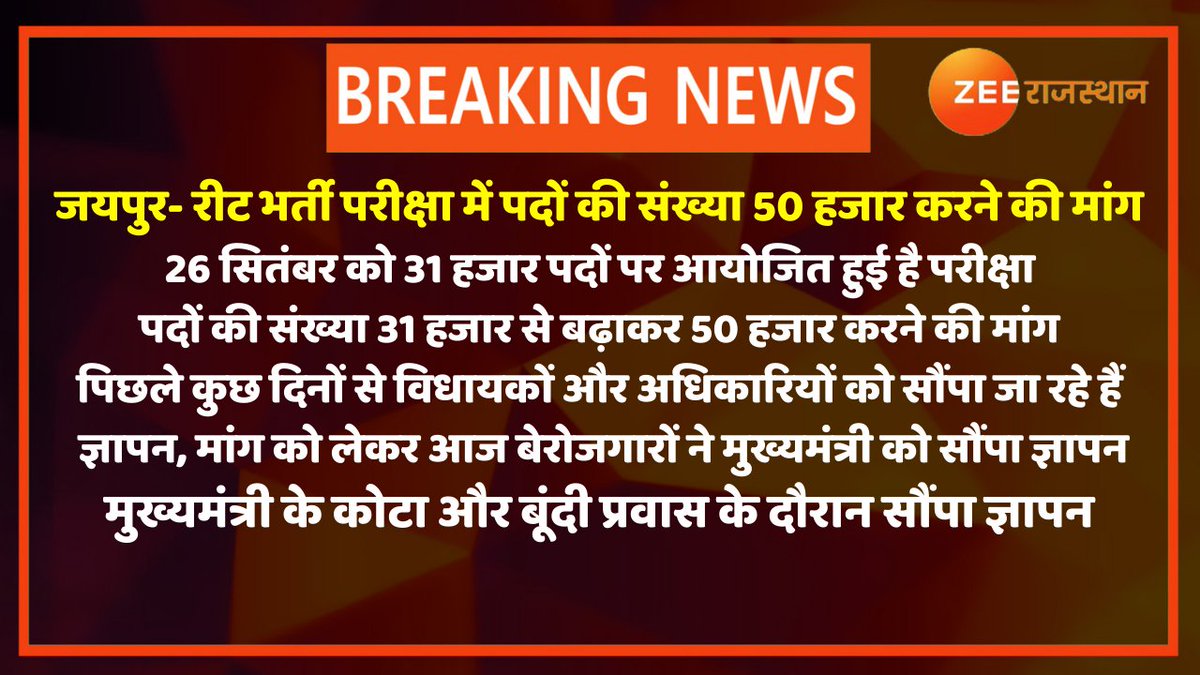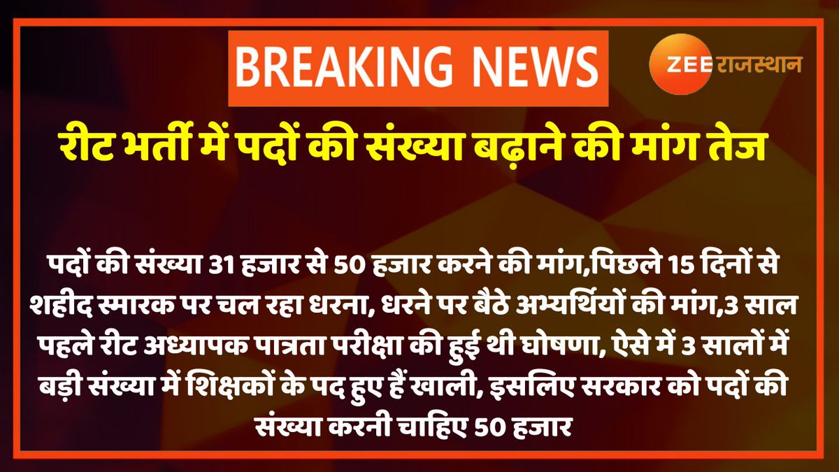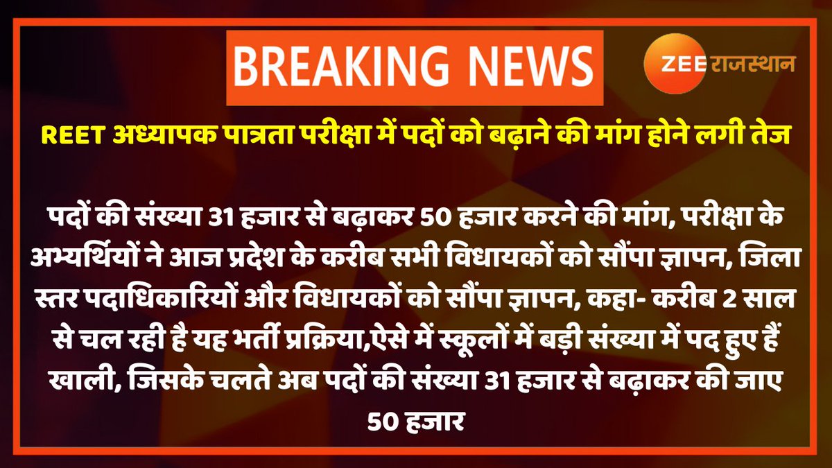 #BigNews: #REET के पद 31 हजार से बढ़ाकर 50 हजार करने की मांग को मिला @SachinPilot का समर्थन
