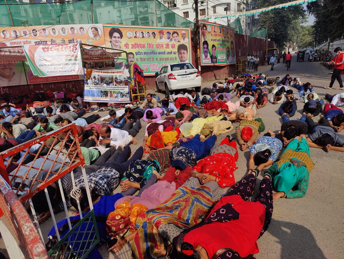 लखनऊ कांग्रेस कार्यालय के बाहर लगी प्रतिमा का सामने गुहार, दण्डवत करके बेरोजगारों ने प्रियंका गांधी से मुलाकात की लगाई गुहार, पिछले 5 दिनों से लखनऊ में बेरोजगारों का चल रहा धरना