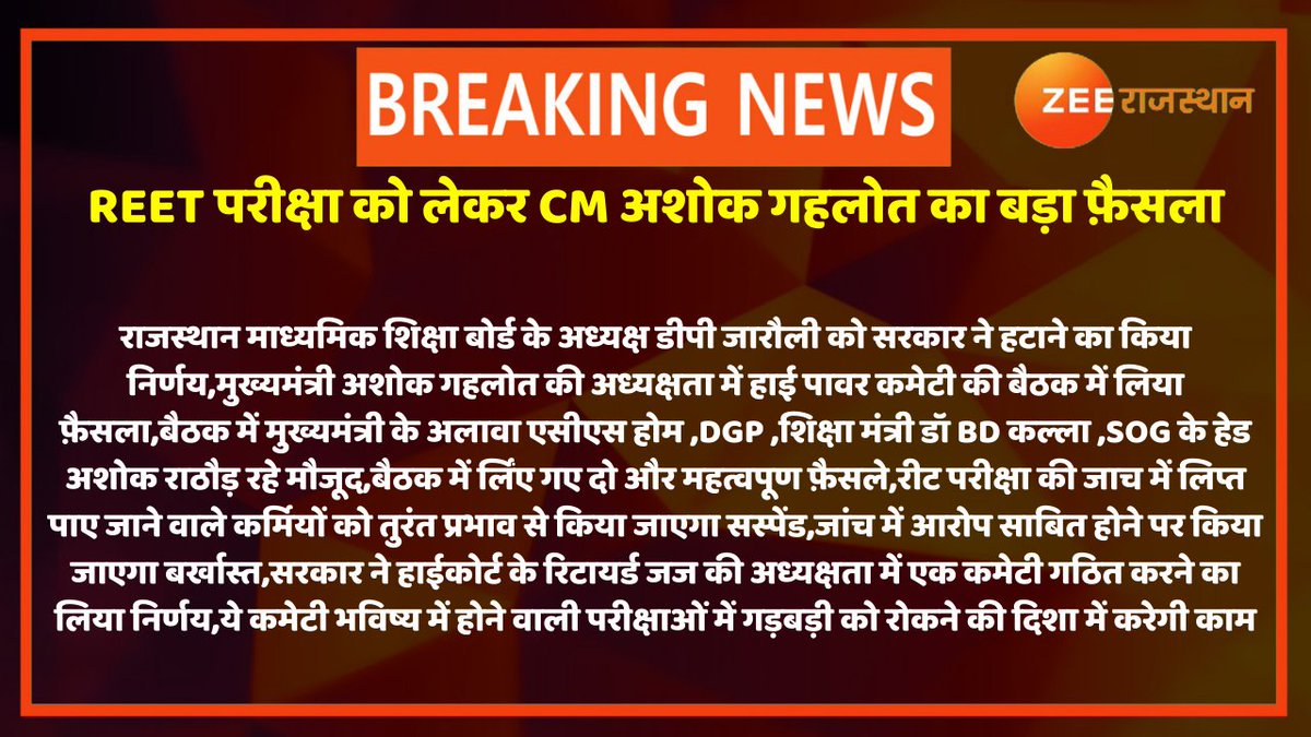 #Jaipur : REET परीक्षा को लेकर मुख्यमंत्री @ashokgehlot51 का बड़ा फ़ैसला