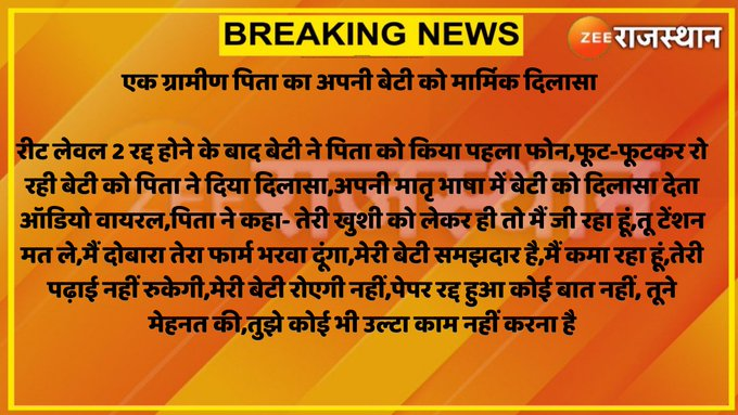 रीट लेवल 2 रद्द होने के बाद बेटी ने पिता को किया पहला फोन,फूट-फूटकर रो रही बेटी को पिता ने दिया दिलासा...
