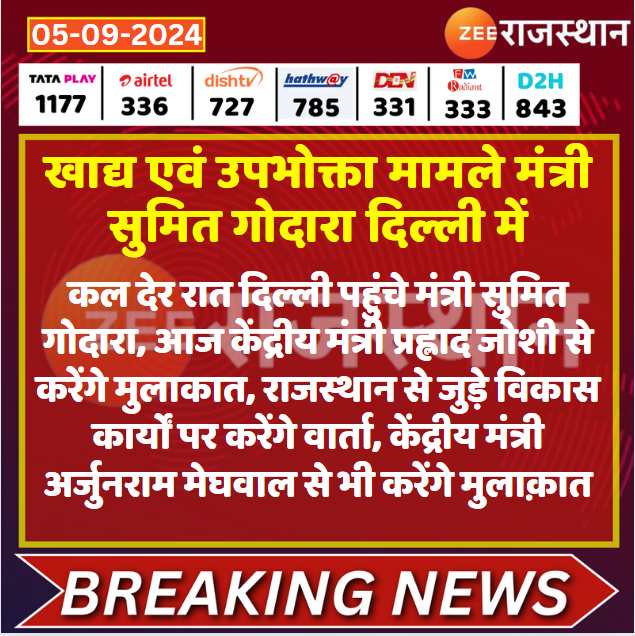 देश-प्रदेश की बड़ी खबरों के लिए देखते रहिए प्रदेश का नंबर -1 न्यूज चैनल Zee Rajasthan