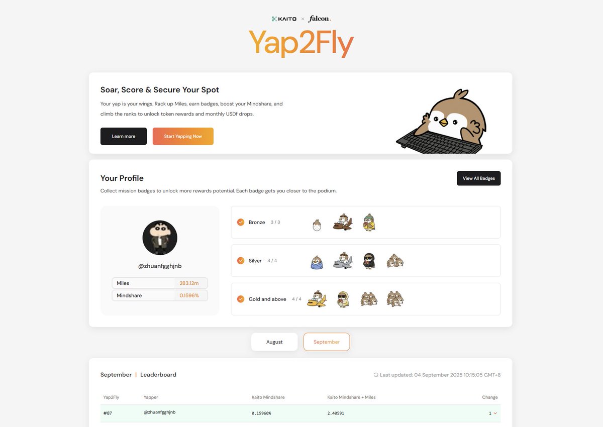 发现@KaitoAI 现在没前些天那么卷了,难道最近都疲倦了?没激情了?不幻想了?都躺平了? 最近偷懒了,好些天没更新@KaitoAI 的项目了,这三个 小章鱼@OpenledgerHQ,米粒@Mira_Network 和@anoma 唯一在嘴的项目,也都掉出了7天榜! 嘴撸是真不能偷懒啊,几天不卷排名就没了,积分也停滞不涨了,想冲榜涨分,必须持续更新输出才行,关键还得卷到项目上线为止,何时是个头! 这波 $M 屎真能拉,拉了好大一坨,看到好多人吃麻了,感觉空军要出动空 $M 了。大盘这几天表现很强,大饼也走出新高,山寨又开始群魔乱舞了! #yap #Yaps $OPEN @Mira_Network @KaitoAI @MiraNetworkCN @anoma @OpenledgerHQ