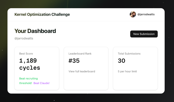 finally beat opus 4.5 on anthropic take home challenge, it is truly kernel optimization fun