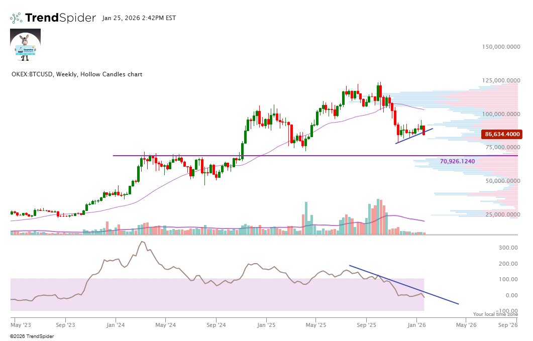 My latest view on BTC is that this is still a trader's market- As I've said before and I will continue to repeat, it is very unlikely for Bitcoin to find momentum to the upside without experiencing significantly higher volatility. The fact that we are at~38 IV combined with horrible volume MTD gives me pause (lower than ANY month of 2025, and especially bad for January in general) when you can see what the metals complex is doing. You literally can't imagine a worse set up for disappointment That being said, people often blame incorrectly that "synthetic/paper" bitcoin is the cause of price suppression. I have long argued it is quite the opposite, which you can see how it manifests in silver below-...