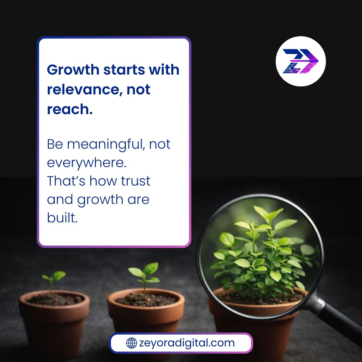 Reach without relevance is noise. 🚫 At @ZeyoraDigital, we focus on meaningful connections that drive real growth and measurable results. #Marketing #DigitalMarketing #MarTech #marketingagency #BrandGrowth #OnlineMarketing
