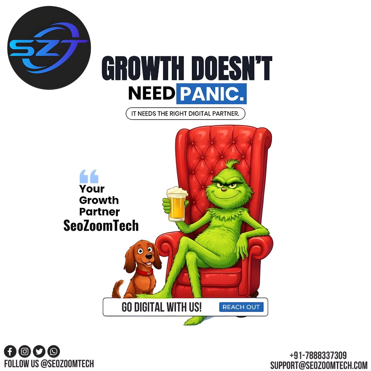 Growth doesn’t need panic 😌❌ it needs the right digital marketing strategy 🎯📊. With #SEOZOOMTECH 🚀, your brand grows with smart planning, creative campaigns, and consistent execution 📈✨. Stay calm, go strategic, and watch your business rise! 💼🔥