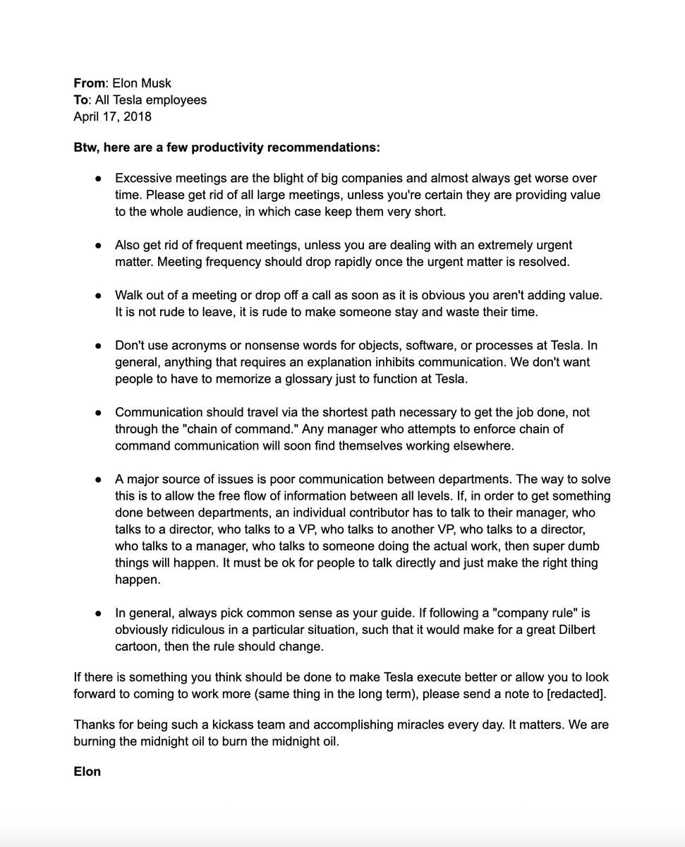 In Elon Musk’s 2018 leaked Tesla memo, he lays out 7 blunt rules for getting more shit done: